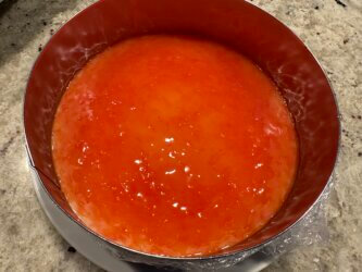 • GELATINE : Ajouter hors du feu la gélatine puis verser dans un moule de 16cm de diamètre.
