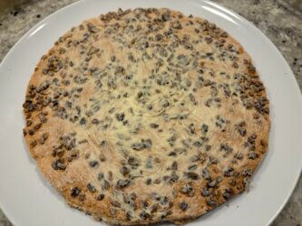 • PISTACHES : Parsemer la surface du biscuit de pistaches concassées.