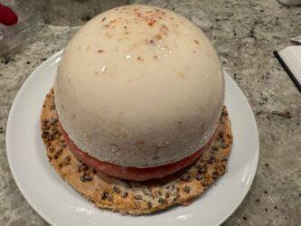 • CHANTILLY : Faire la chantilly pour décorer tout autour du dôme.